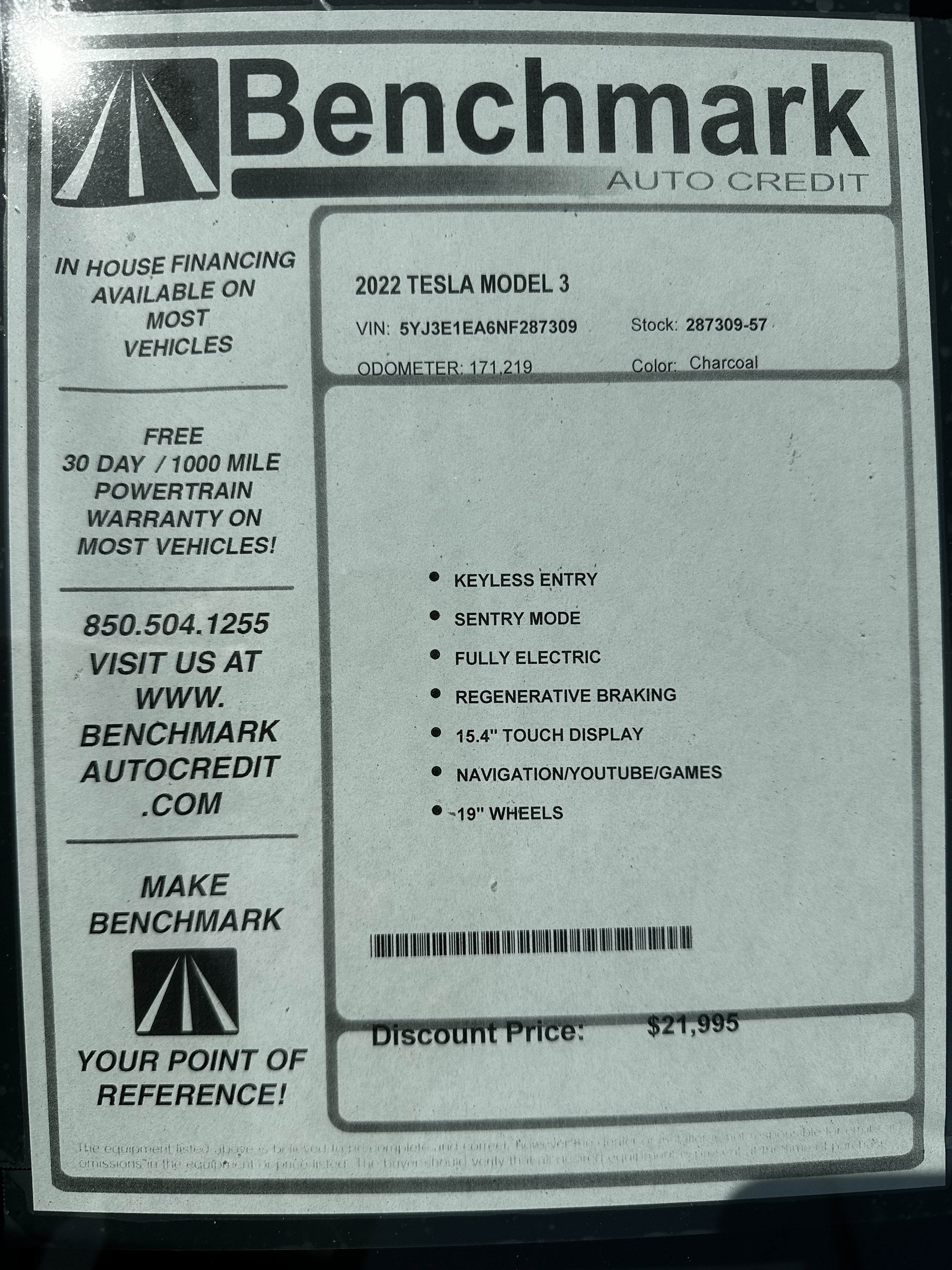 Call Benchmark Auto Credit at (850) 391-3936.