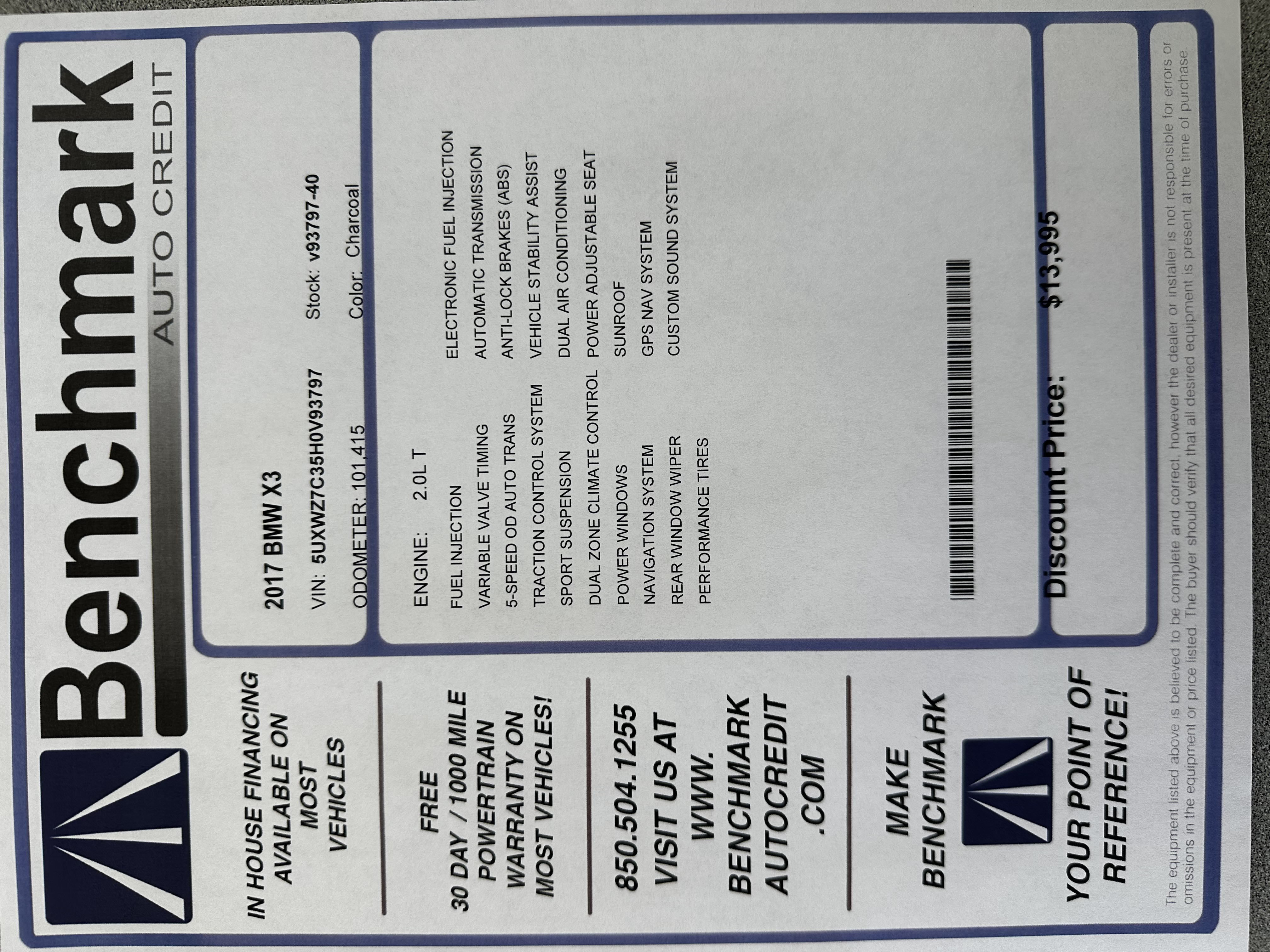 Call Benchmark Auto Credit at (850) 391-3936.