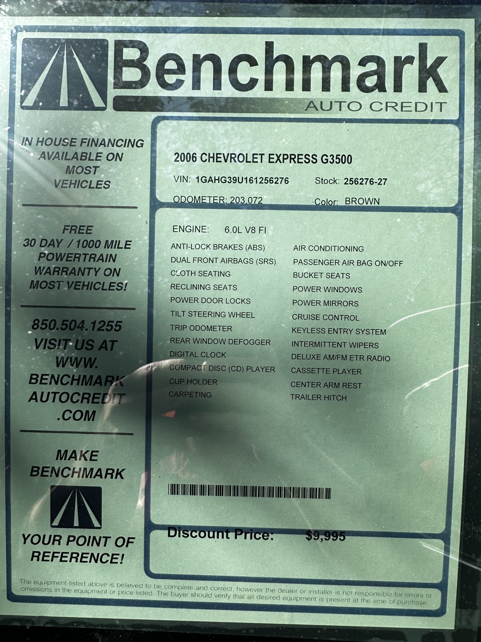 6.0 V-8, Auto, AC, all power, 15 passenger, runs excellent, 203k miles. Comes with a warranty. $9,995
