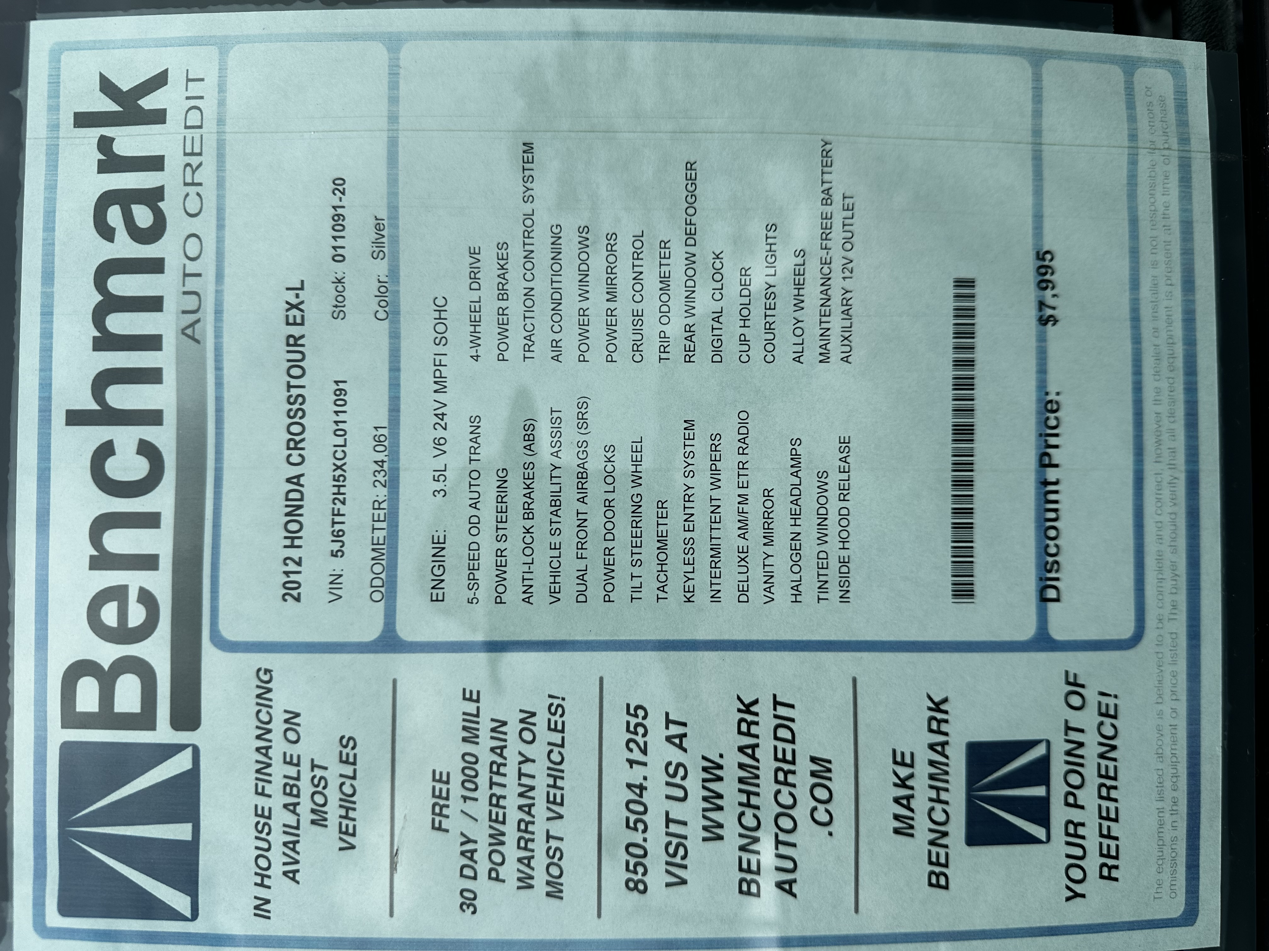 Call Benchmark Auto Credit at (850) 391-3936.